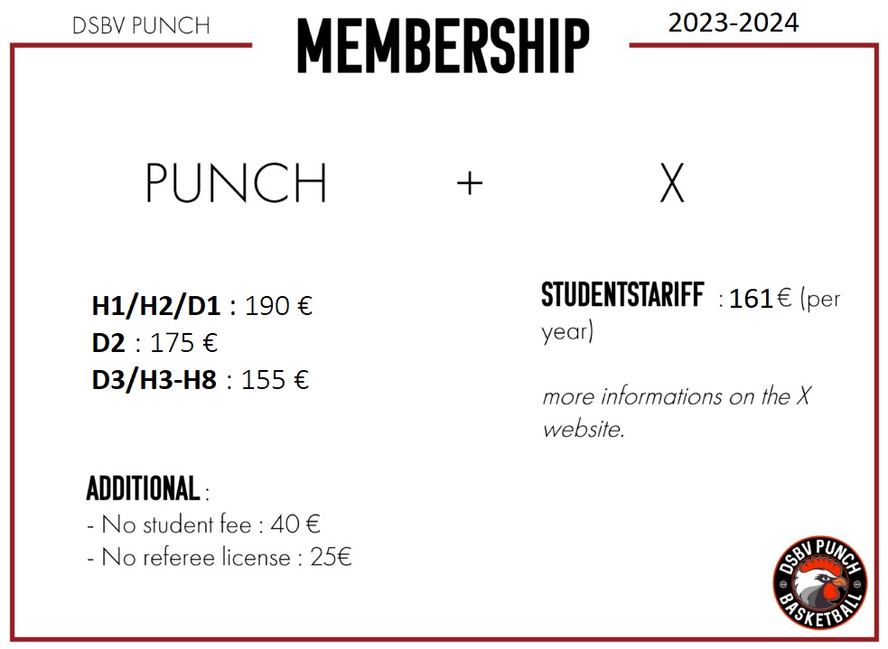 Would you like to join punch? You can do so here! Below you can see the membership fees and the playing level of each team!